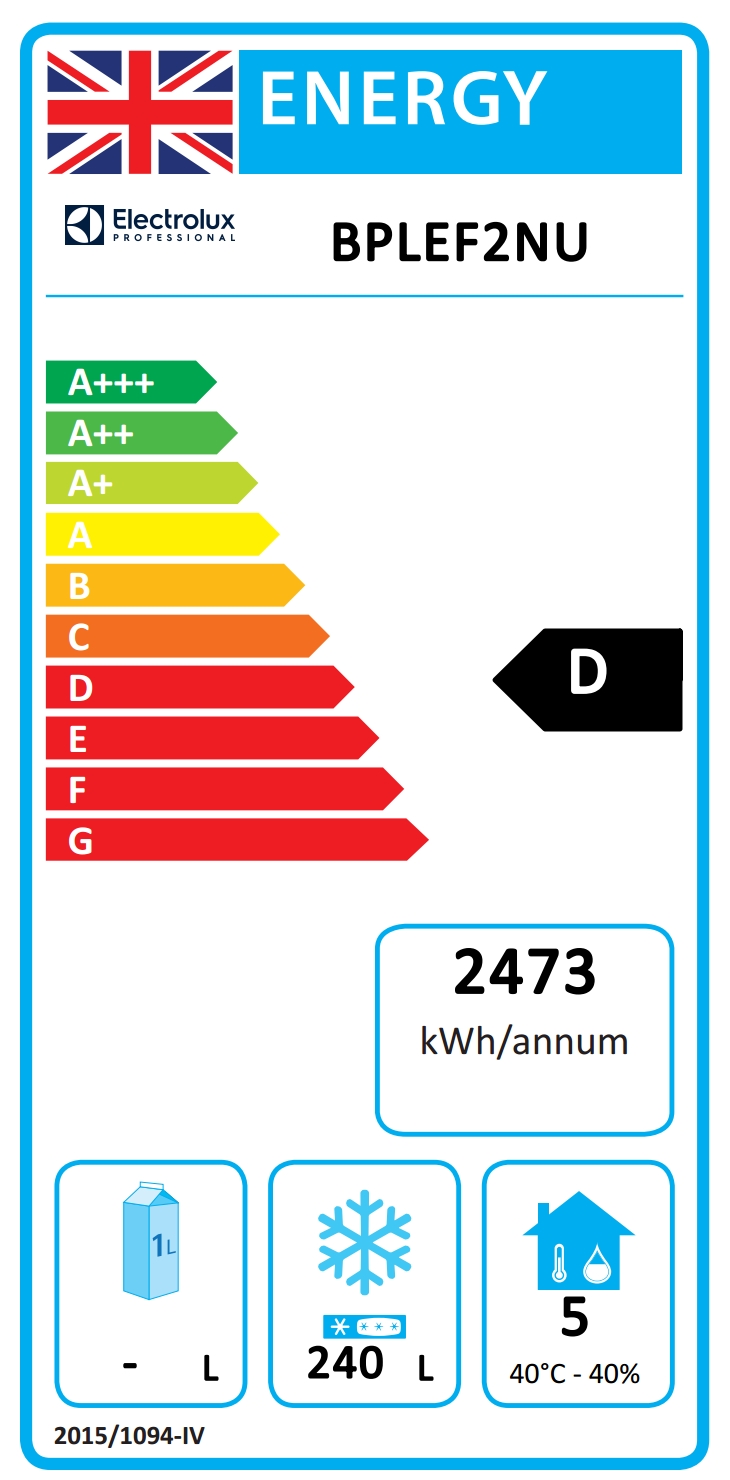 Yearly and daily energy consumption (EU Reg. 2015/1094): 2473kWh/year - 7kWh/24h