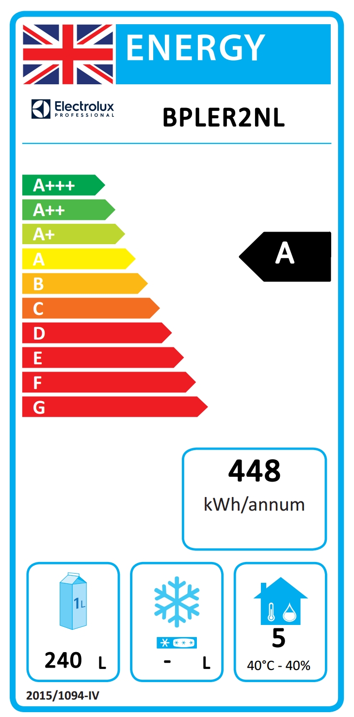 Yearly and daily energy consumption (EU Reg. 2015/1094): 448kWh/year - 1kWh/24h